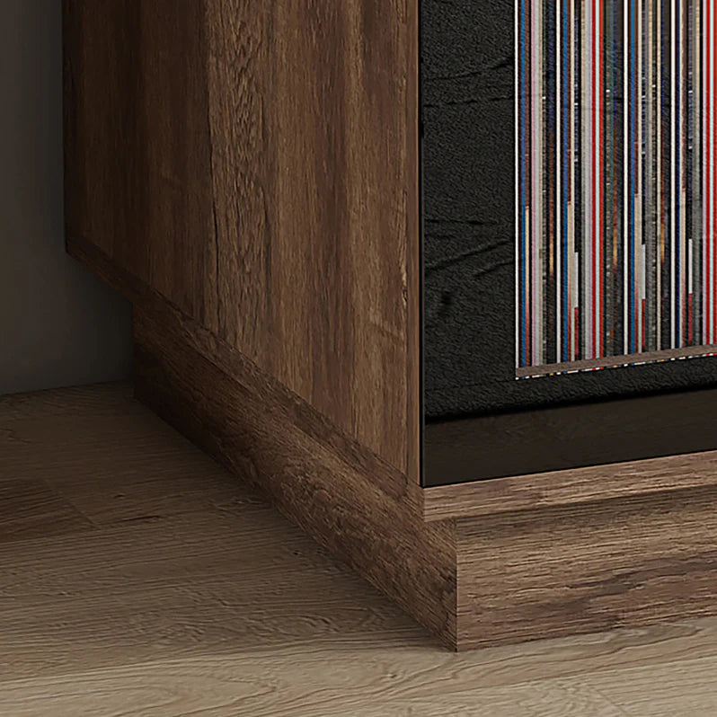 The Hollywood HiFi Cabinet has been designed and constructed with your loved ones in mind. Even Artemis the goddess of Child Care would be proud of its safety features. It has a solid wood plinth for added stability for your media storage solution. Finished in the same stylish Dark Oak Melamine Veneer as the rest of the cabinet the plinth gives the cabinet an illusion of floating, while yet still being a solid and stable storage solution. It also is supplied with an Anti-Tip kit to prevent the unit from toppling over and hurting family/friends or damaging its contents. A Tempered Glass Door is used to prevent shards of glass from cutting someone and from little ones pulling stored items on top of themselves.