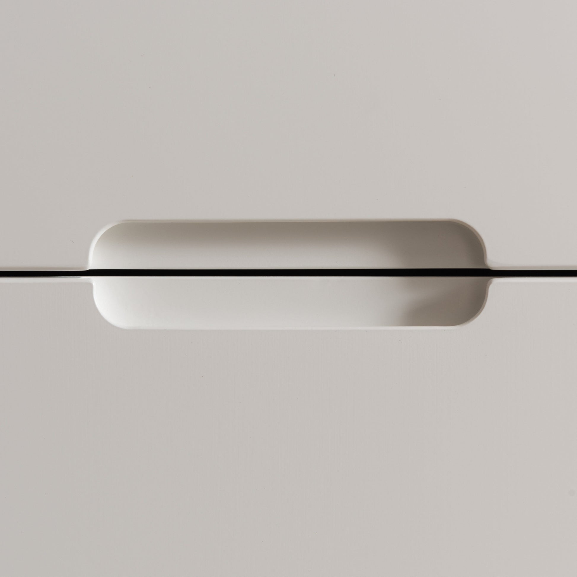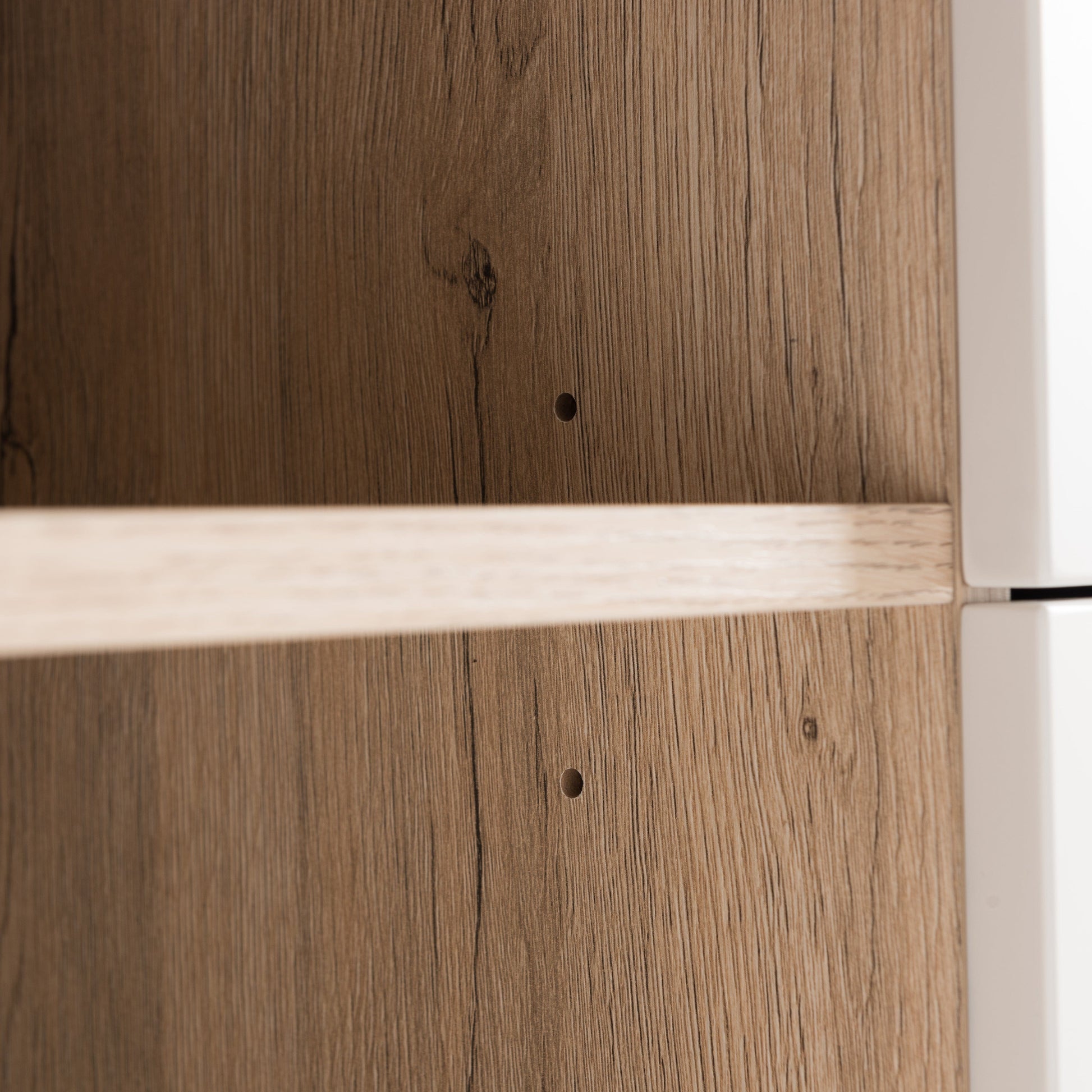 Primary Colour: Light Oak Veneer Cabinet, Four Painted Drawer Fronts.