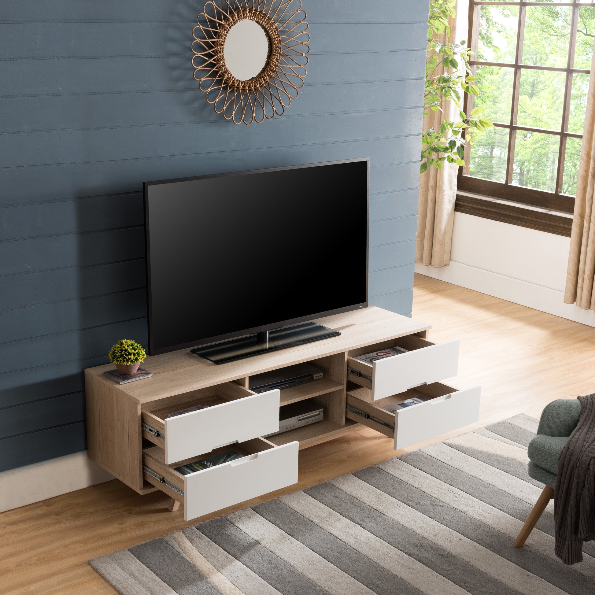 Tauris Nova Entertainment Center, TV Stand, Entertainment Unit 1500mm Scandinavian Inspired Design, Solid Rubber Wood Legs Oak