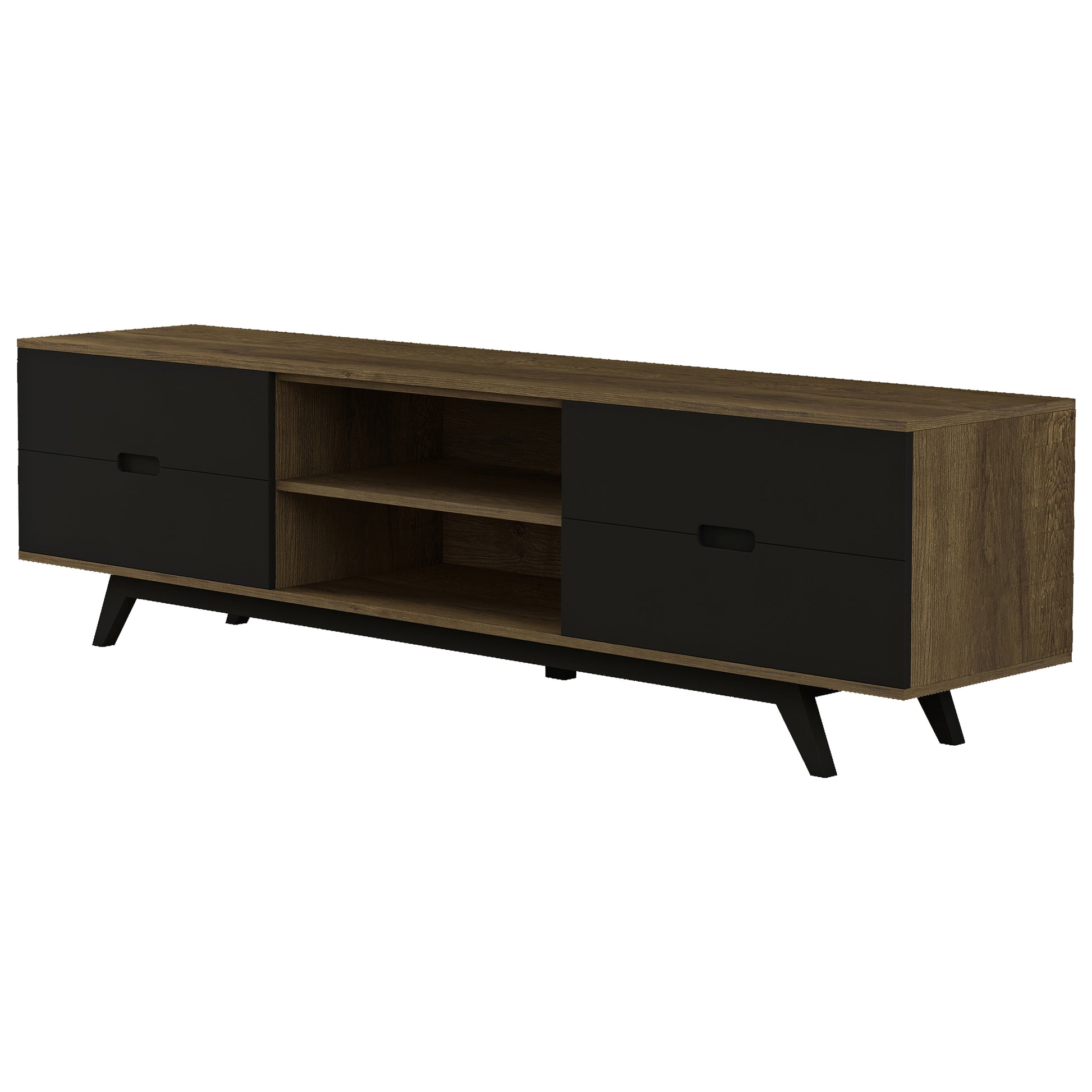 Tauris Nova Entertainment Center, TV Stand, Entertainment Unit 1800mm Scandinavian Inspired Design, Solid Rubber Wood Legs Dark Oak