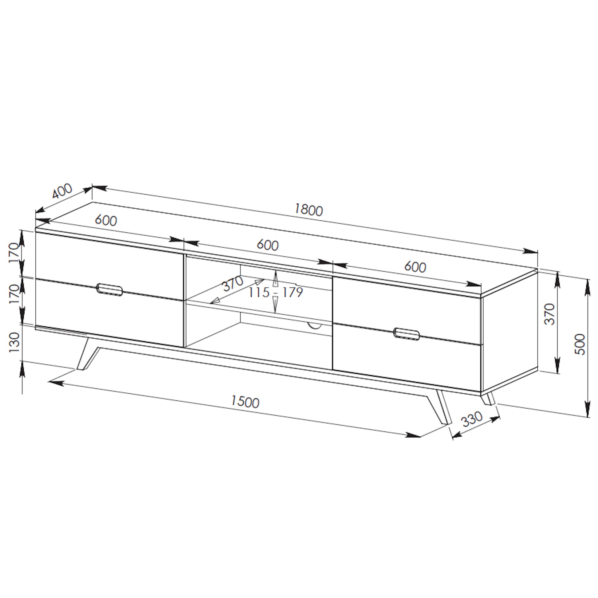 Unit Built Dimensions: 1800(W) x 400(D) x 500(H) mm